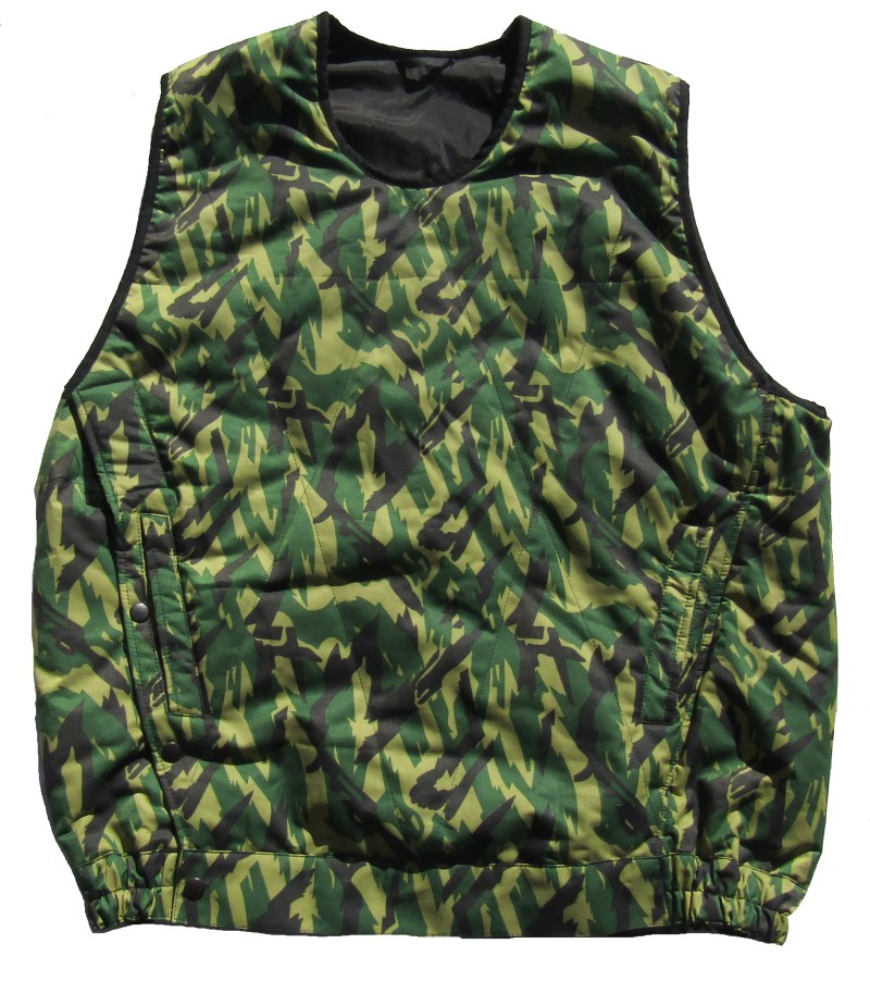 hood.Also included is a sleeveless vest,same camouflage pattern,