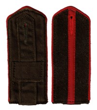 RSECK2.Cossack, Russian and Ukrainian Armies of liberation junior officer shoulder boards on Tan fabric with Red piping and 1cm Red center stripe. Shoulder boards are 5.5cm wide x 13.5cm at center. $20.00pr |