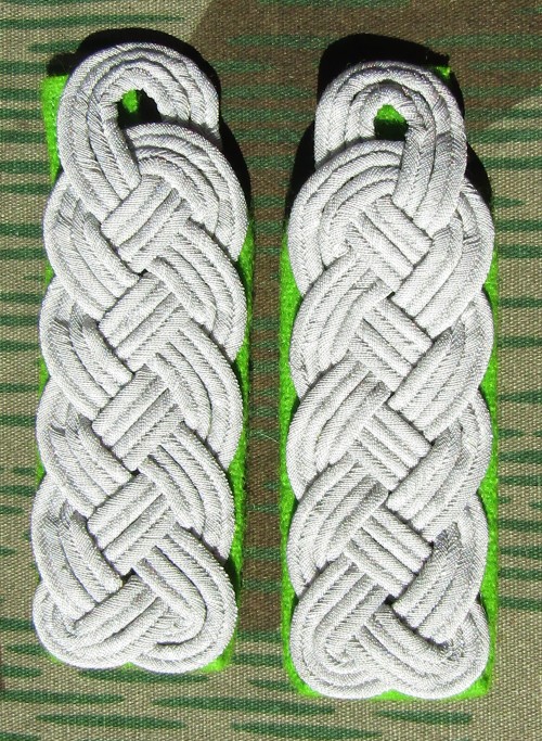 Grossdeutschland shoulder boards. Aluminum tress on dark green wool.