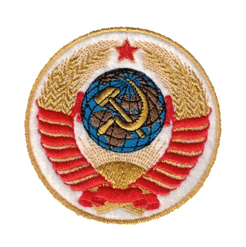 R1291W.Soviet state seal sleeve patch.11cm diameter. On White. $12.00