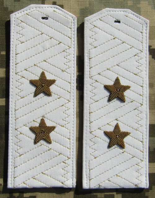 White shoulder boards with gold stitching and gold/black/red stars.$60.00 |