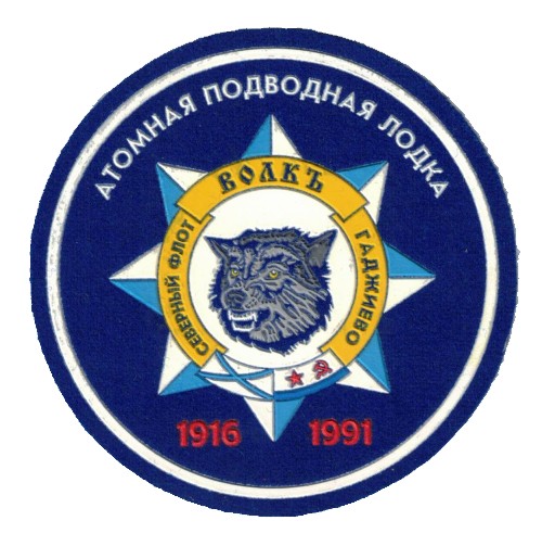 R1307.Russian sleeve patch for nuclear submarine Wolf. $8.00