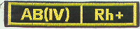 "AB(IV)Rh-".Embroidered 3.5cm x 12cm.Gold on Black.$5.00