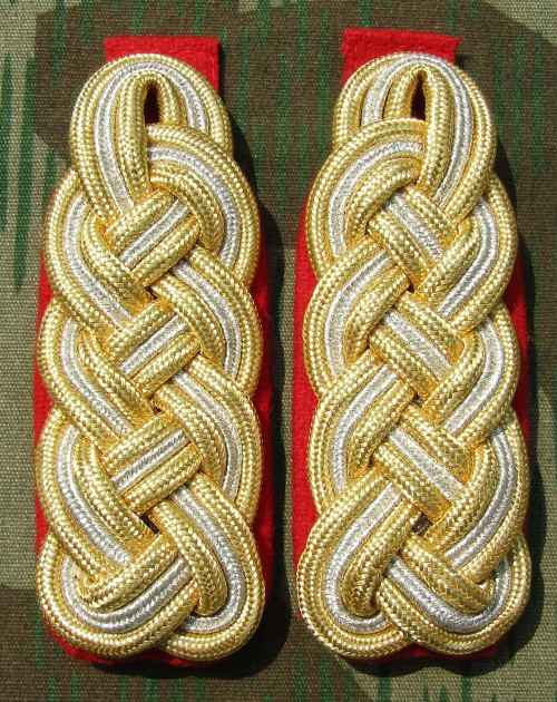 Grossdeutschland shoulder boards. Aluminum tress on dark green wool.