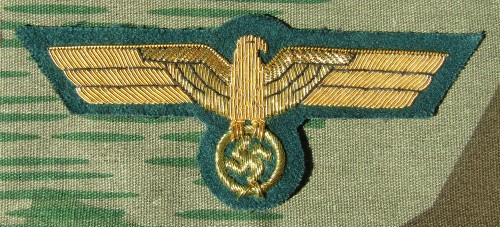 RSE43.German Army Generals breast eagle on Dark Green. Overall about 4.4" x 1.75". $15.00