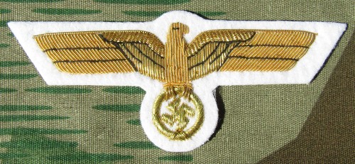 RSE583.German Army officers cap eagles. Hand embroidered wire on Dark Green. $13.95