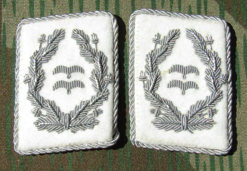 RSE90.H.G.Division officer collar tabs.Skull on white cloth with aluminum
