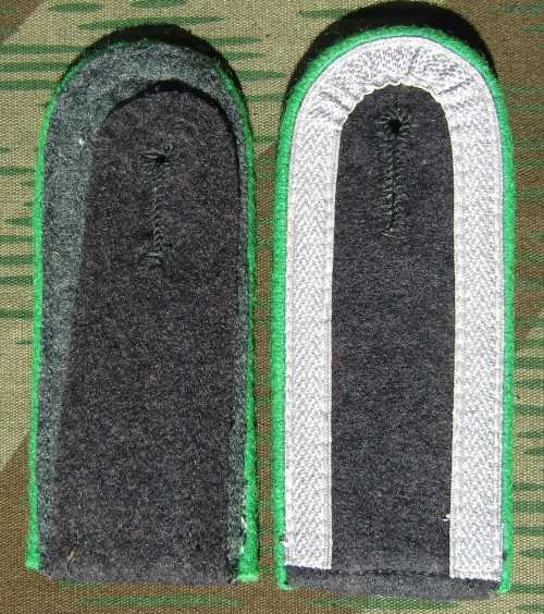 RSE545.Luftwaffe Unteroffizier shoulder boards. Blue/Grey wool with Green piping and 3/4 tress. Rifle Regiments. $24.95pr |