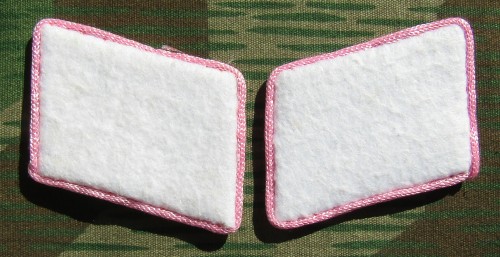 RSE87.H.G.Division enlisted ranks collar tabs.White cloth with pink