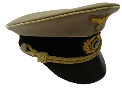 Field gray wool body with Gold piping, leather visor, hand embroidered bullion cap eagle and cocarde. Available in sizes 58,59,60. $79.95 |