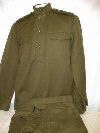uniform.Olive tunic with red piping around cuffs and collar.Green embroidered collar