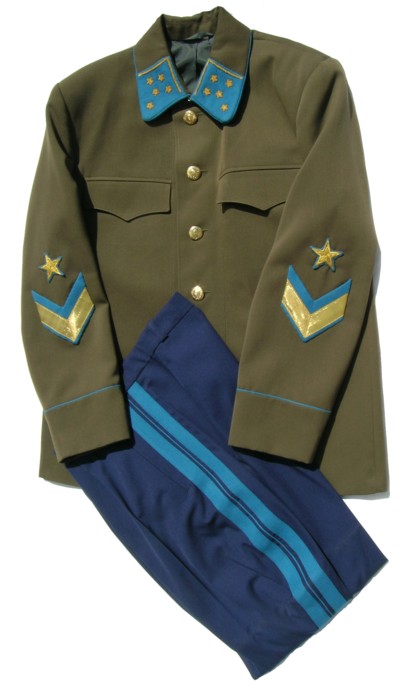 model 1943 service dress uniform (jacket and blue breeches) for Major General Infantry troops. Jacket fabric is high quality late Soviet Army Generals fabric. Buttons are late Soviet Generals type. Size is 58-4. $495.00 |