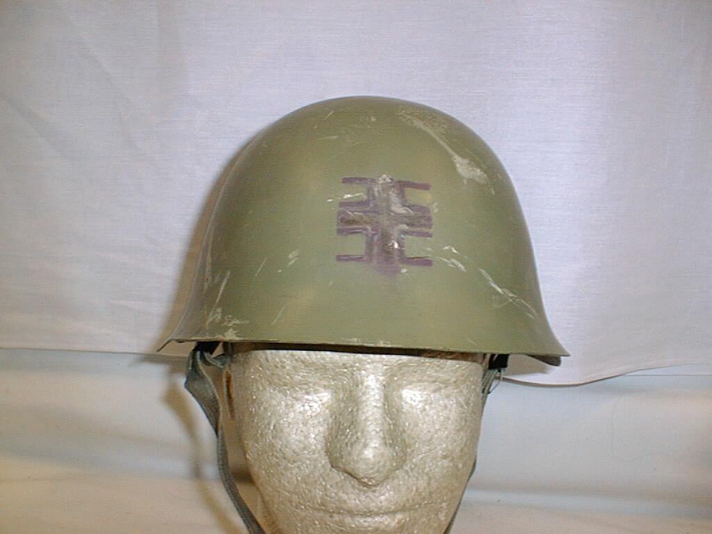 | CAHMT9.Bosnian Serb helmet with the Serbian cross and 4 c's drawn on both sides with a black marker. $69.95 |