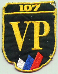 the small national tricolor - white, blue and red. Has numeral "107" in gilt on