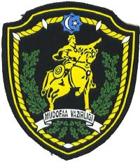 inscription "PENTRU MERITE MILITIENESI". At lower part of the badge is