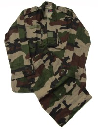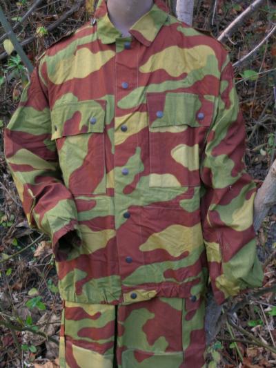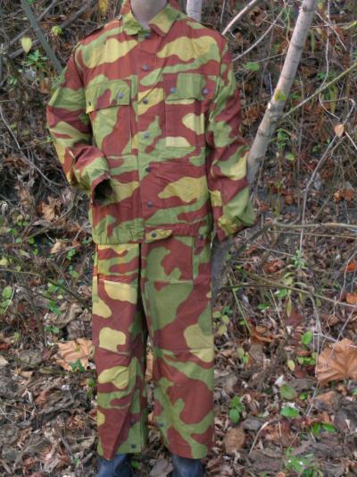 BENIN1. Benin French Lizard Camouflage Set Size 104/108 Jacket has 2 upper and 2 lower pockets, pants have 2 front snap pockets, 2 back pockets, 2 cargo pockets jacket