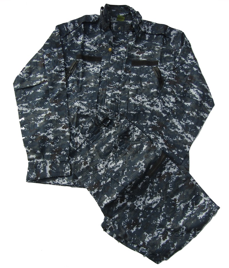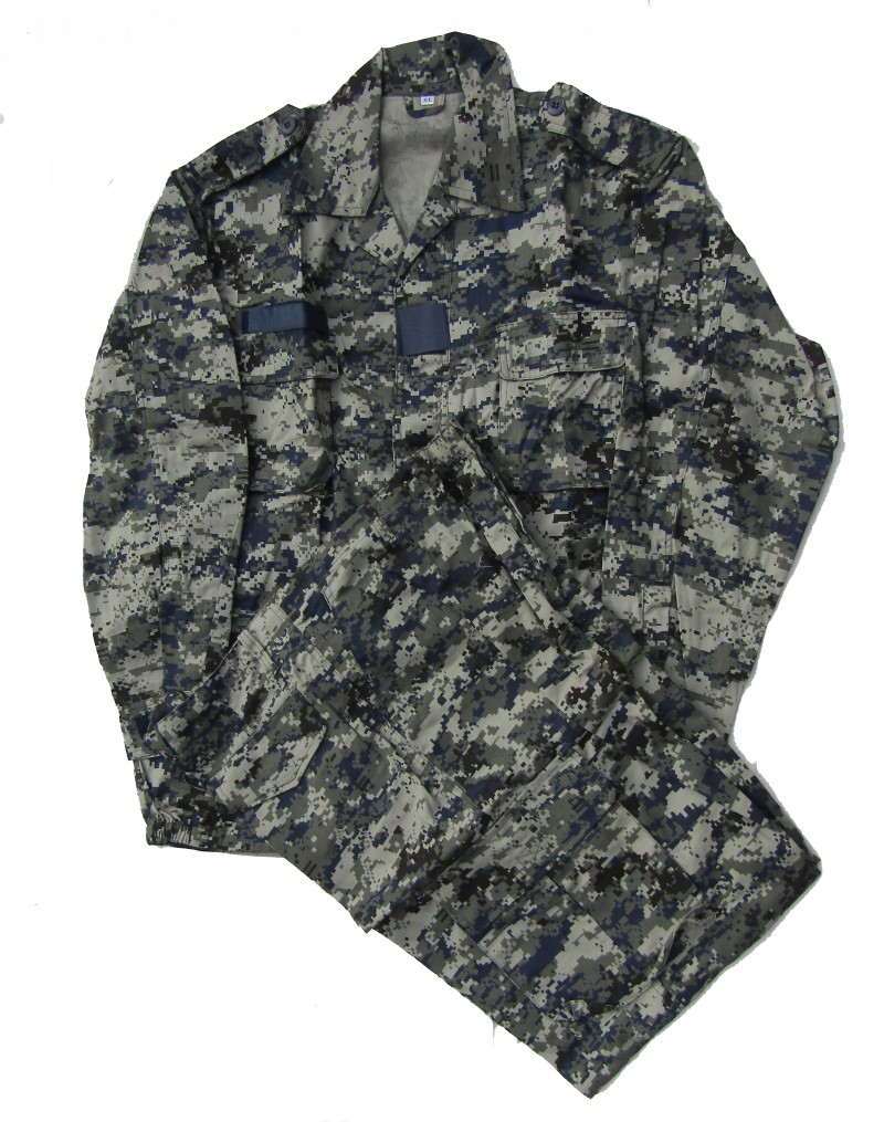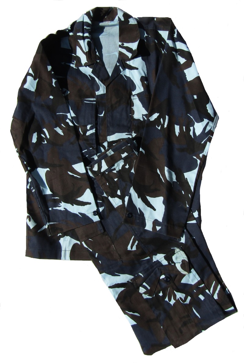 UGANDA1.Ugandan Blue camouflage set, jacket and pants. Jacket is 4 pocket