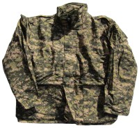 has a US Army breast patch and a sleeve patch that someone put on. Unissued.