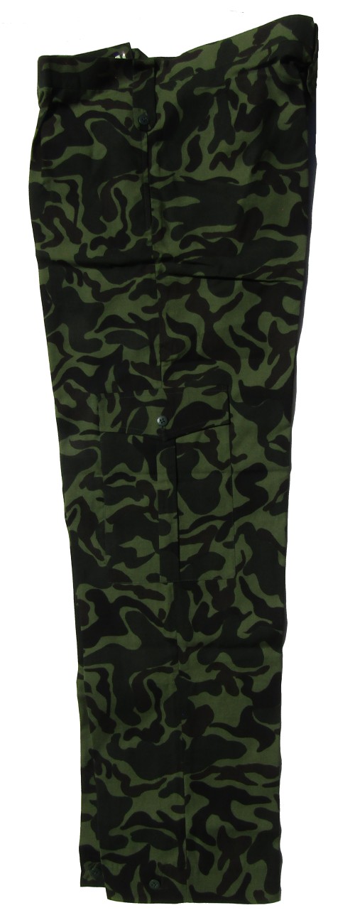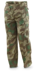 GR12. Mil-Tec Splinter camouflage Ranger BDU field pants. Pants are button front and have 2 front pockets, 2 back pockets, 2 cargo pockets. 80% polyester 20% cotton. Available in sizes Large , XL . $39.95