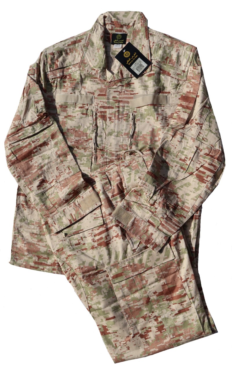 SAU1.Saudi Arabia Royal Guards camouflage set, jacket and pants. Shirt has 2 upper vertical zipper pockets,