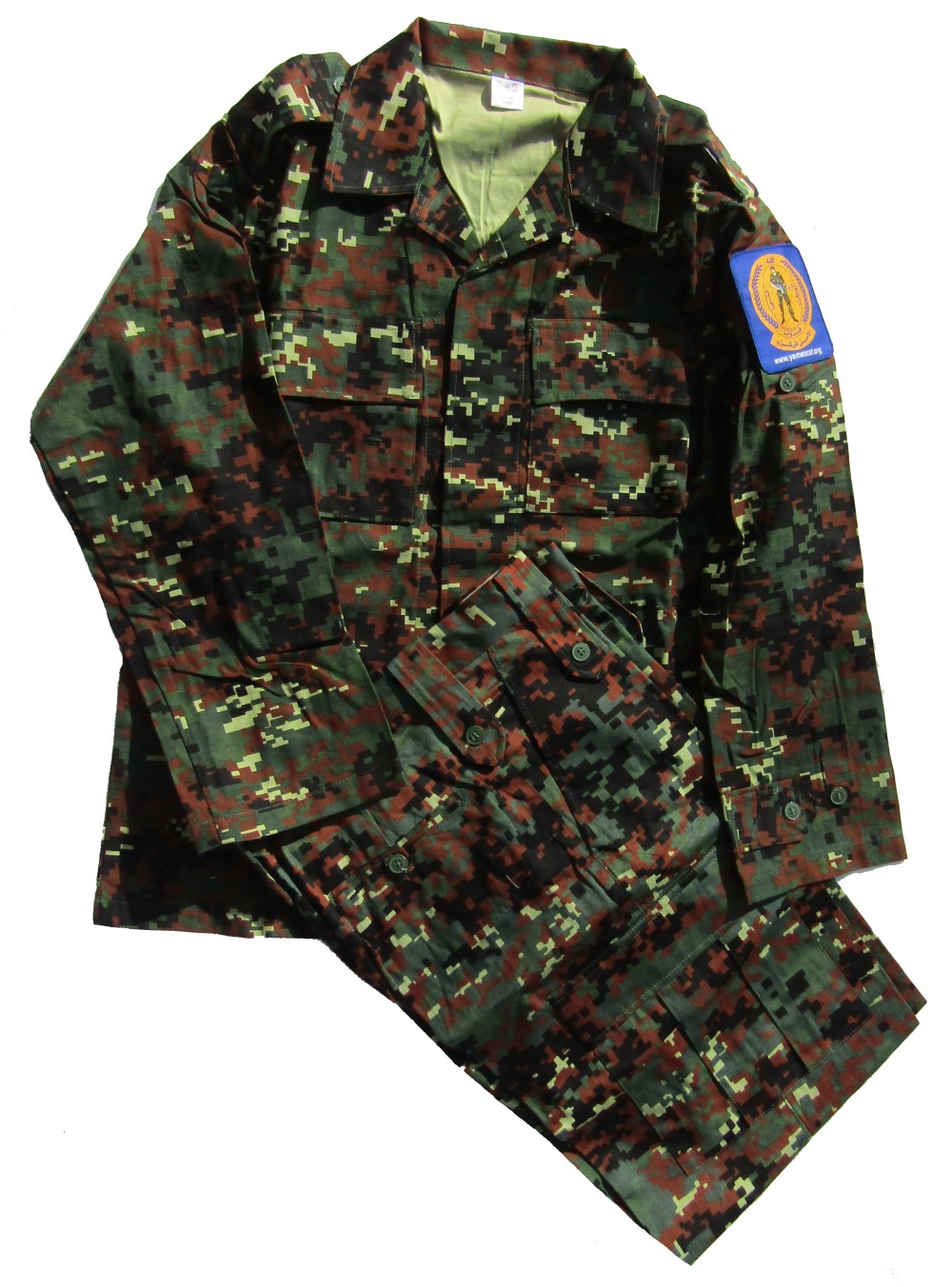 RDF1.Rwanda camouflage uniform. Pants have 2 front pockets,2 cargo pockets, 2 lower leg pockets,