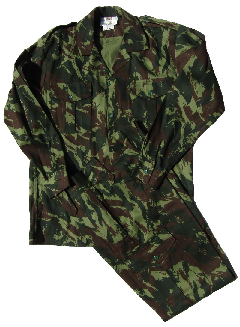 ZIM1.Zimbabwe Portugese pattern camouflage set. Shirt has 2 upper pockets.