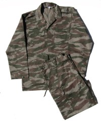 CU6. Cuban Special Forces Green Ameba camouflage fatigue uniform. Jacket has 2 upper pockets, pants are 6 pocket. Available in sizes Medium, Large, XL . $119.95
