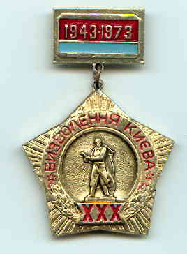 SVB6.Soviet badge for 30 years of the liberation of Kiev 1943 - 1973. $28.00