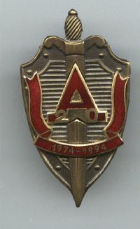 SMB18.Soviet style breast badge for 20 years of Alpha group, 1974-1994. $20.00