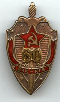 SMB19.Soviet breast badge for 60 years of the VChK-KGB. Type 1. $15.00